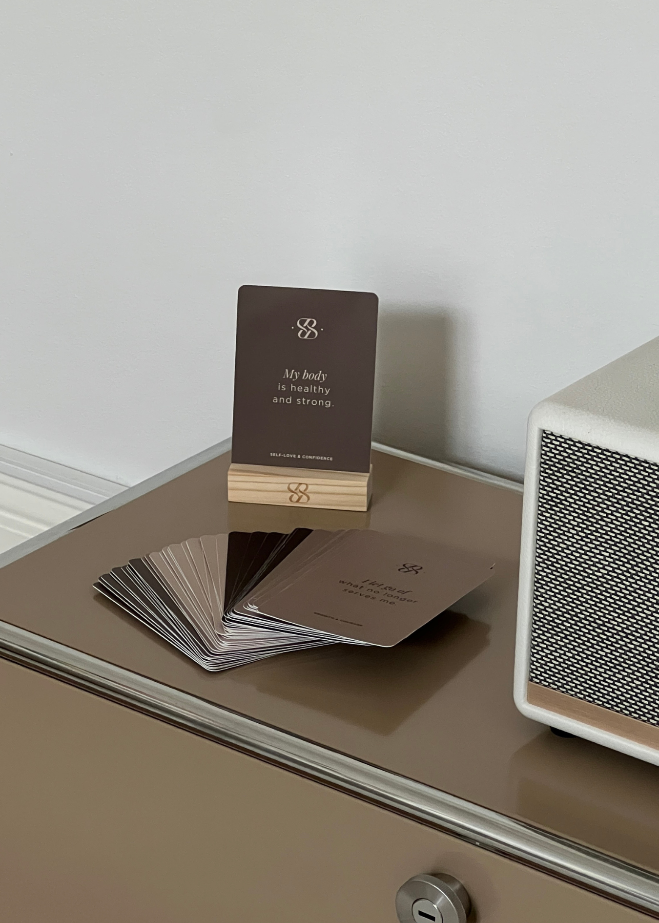 Ob auf deinem Schreibtisch, am Spiegel oder auf deinem Nachttisch – die Affirmationen begleiten dich durch den Tag und schenken dir kleine Momente der Achtsamkeit.